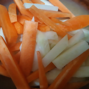 Рецепт: порезать овощи длинными полосками, можно произвольно, как вам нравится. Посолить по вкусу, сбрызнуть лимонным соком, перемешать, по желанию можно добавить оливковое масло, все перемешать. Можно взять только один овощь вместо предложенных двух, будет тоже вкусно.